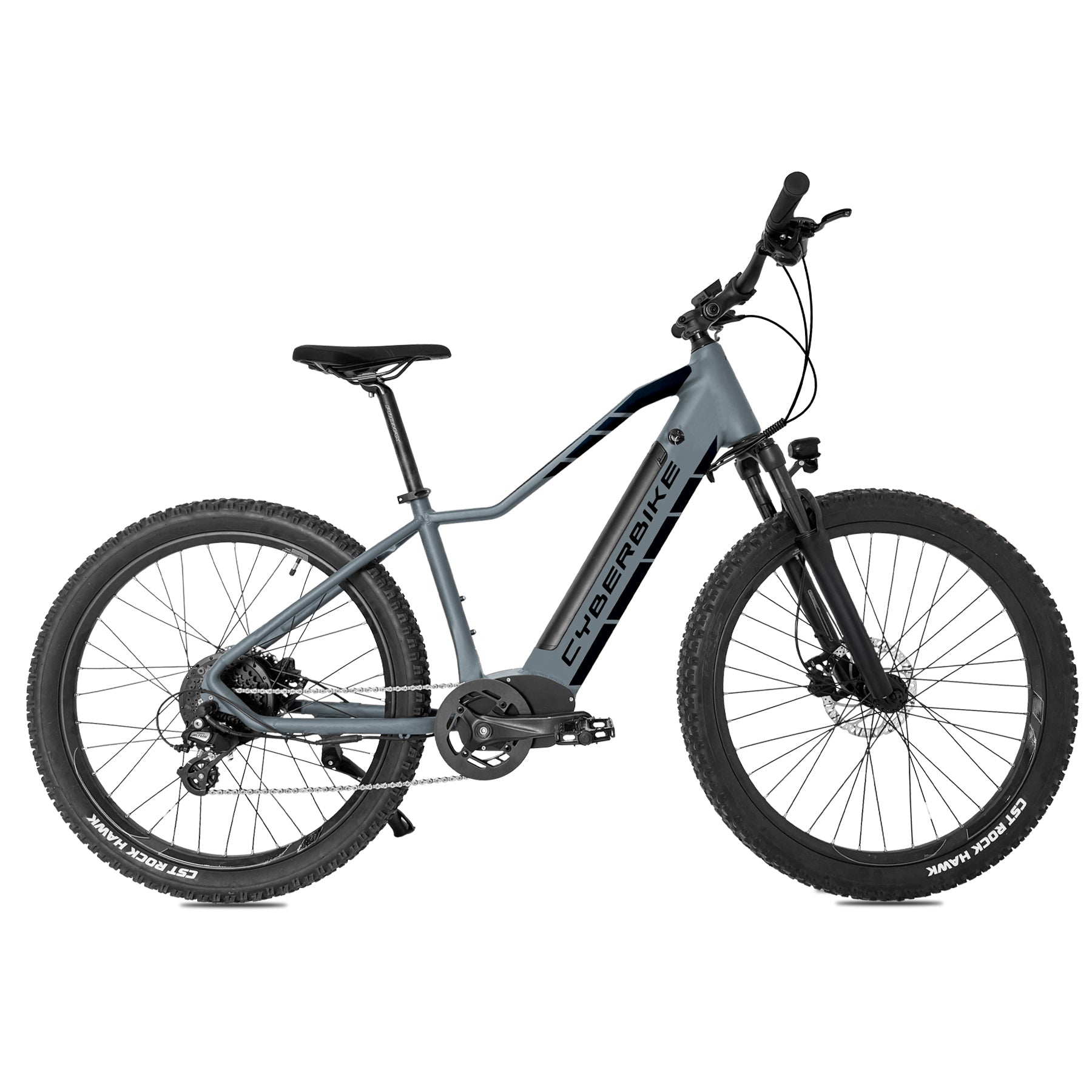 The 2025 Cyberbike™ Aspen is a rugged hardtail eMTB built for riders who want real trail performance without the high price tag. Powered by a 500W rear hub motor and a 576Wh battery, it delivers up to 60 miles of range and smooth pedal assist up to 28 mph. Outfitted with TEKTRO hydraulic disc brakes, a Shimano Altus 8-speed drivetrain, and a lockable 100mm RST suspension fork, it’s equipped for both backwoods singletrack and everyday riding. The Aspen offers unbeatable value in a stylish, affordable, and reliable package—and it’s fully UL 2849 certified for electric system safety.